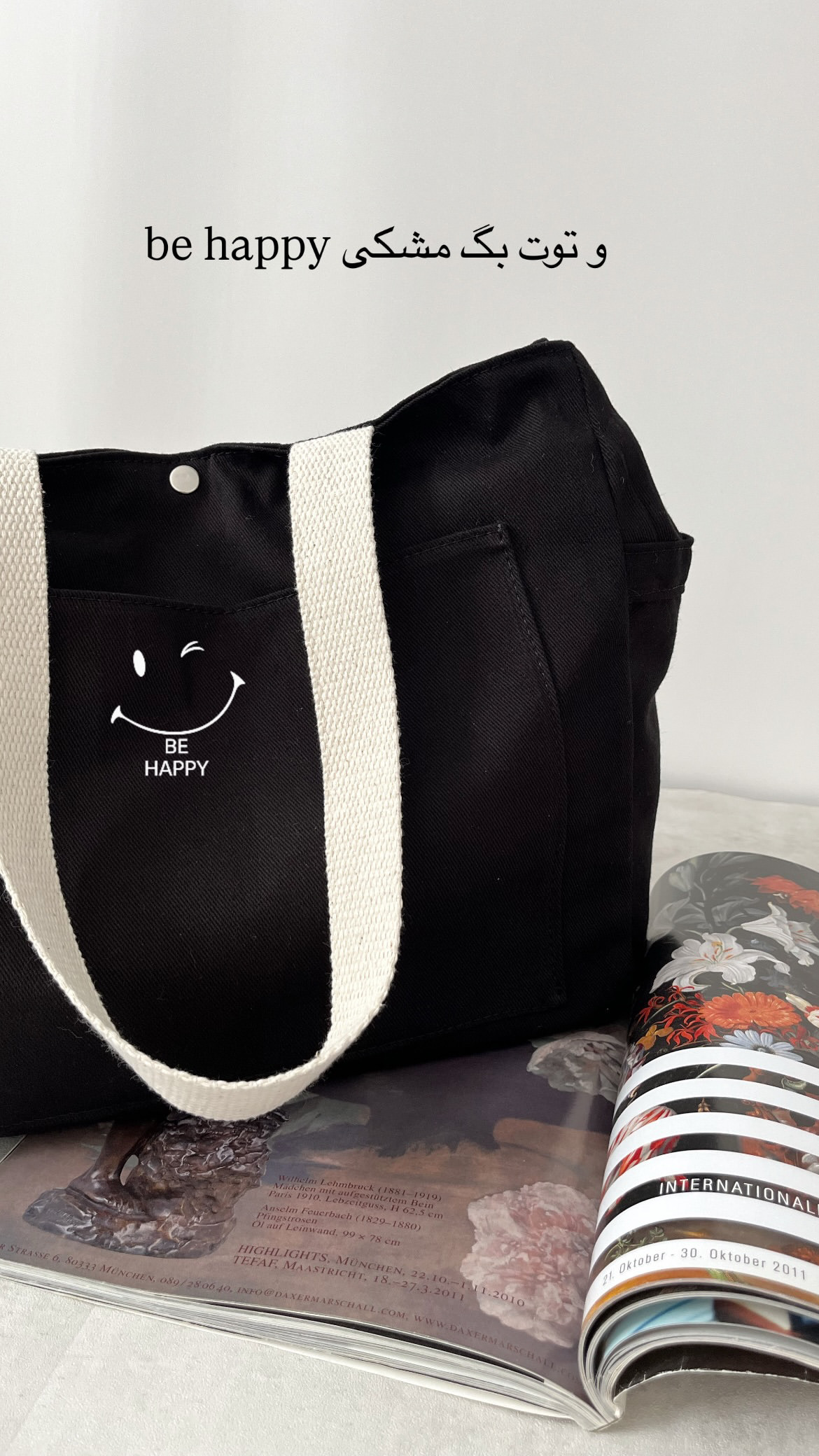 توت بگ مشکی طرح be happy |❌تخفیفی ❌