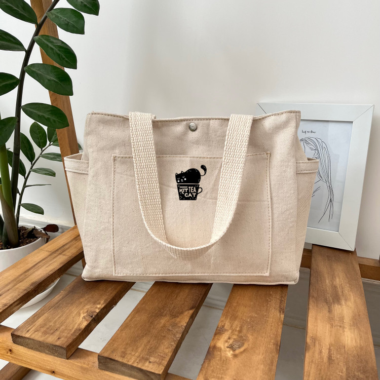 توت بگ کرمی سایز اسمال|کیف پارچه ای |طرح گربه cat
